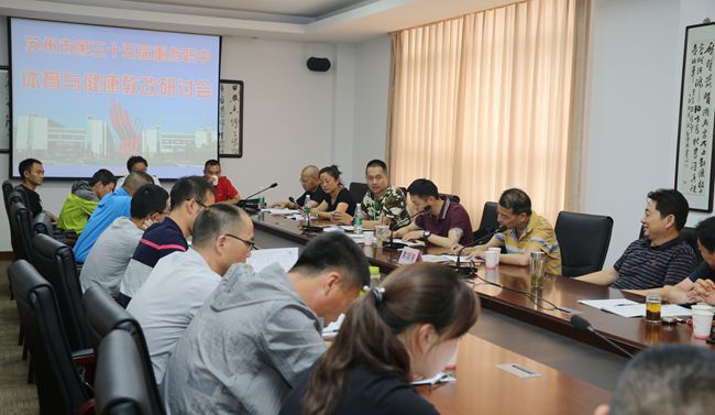 戊戌仲夏,香樟绿浓,在江苏省常熟中等专业学校行政楼8楼会议室里,笑语盈盈,胜友满座。来自苏州市 21所重点职中的体育同仁们济济一堂,积极投身苏州市第三十五届重点职中体育与健康教改研讨会,聚合集体智慧,共筹教改策略。