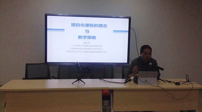 苏建青校长、平建新副校长、教学管理处徐建军处长、教师发展中心范梅芳副主任以及34位青年教师参加了此次活动。平建新副校长主持开班仪式并作了重要讲话,他介绍了青年教师培训班开办的初衷与意义,鼓励在座的青年教师以培训为契机,提升教育教学能力,并且提出了明确的培训要求,为青年教师指明了前进方向和努力目标。接着,范梅芳副主任就学校青年教师的现况进行了介绍,明确了学习任务,宣布了培训班班委会成员。最后,由江苏省职业技术教育科学研究中心副研究员,华东师范大学臧志军博士做了主题为《项目化课程的理念与教学策略》的讲座。臧博士介绍了以项目为引领、以任务为驱动、以技能为载体的项目化课程理念,分享了具体的项目化教学案例,让我们认识到更新教学观念、重塑课堂魅力的重要性。臧博士的讲座观点新颖,特色鲜明,对我校的教学改革,尤其是课程改革具有很强的现实指导意义。