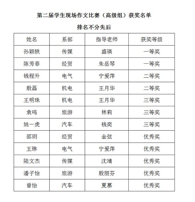 为了进一步提高学生的作文水平和语文素养,丰富校园文化生活,近日,由教学管理处组织、校语文中心组承办的校园第二届学生现场作文比赛顺利举行。