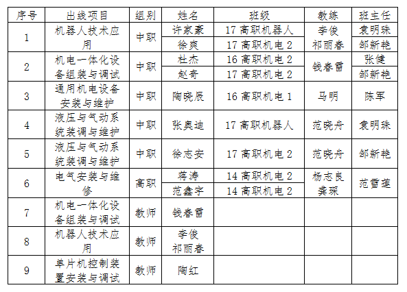 本学期以来,在电气工程系全体师生的共同努力下,系部师生积极参加各级各类大赛并连创佳绩,其中在刚刚结束的苏州市职业学校技能大赛加工制造类项目中共有6组学生组、3组教师组共计13位师生将代表苏州市参加江苏省职业院校技能大赛,接下我们将再接再厉、努力训练争取在省赛中获得佳绩,为校争光!