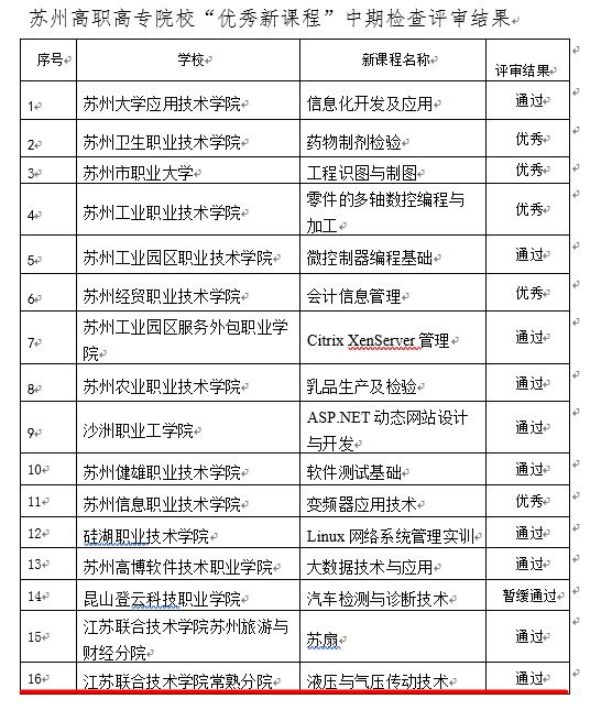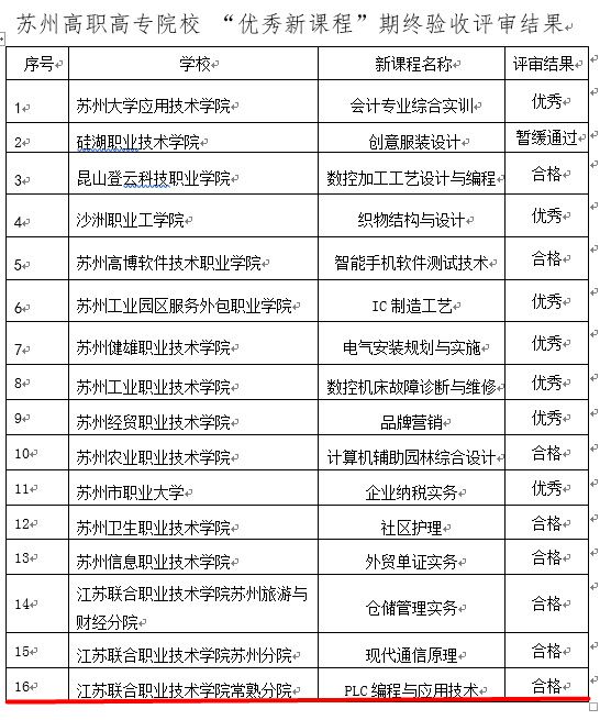 根据苏州市教育局《关于开展苏州高职高专院校第二批优秀新课程”终期验收工作的通知》(苏教高职函〔2018〕68号)和《关于开展苏州高职高专院校第三批“优秀新课程”中期检查的通知》(苏教高职函〔2018〕69号)文件精神,电气工程系丁明华老师2016年主持申报的《PLC编程与应用技术》通过苏州市终期验收被获批为第二批“苏州市高职院校优秀新课程”,同时,电气工程系顾敏佳老师团队申报的《液压与气压传动技术》顺利通过苏州市第三批高职院校优秀新课程中期验收。这是电气工程系在课程建设方面取得的又一重要成果。